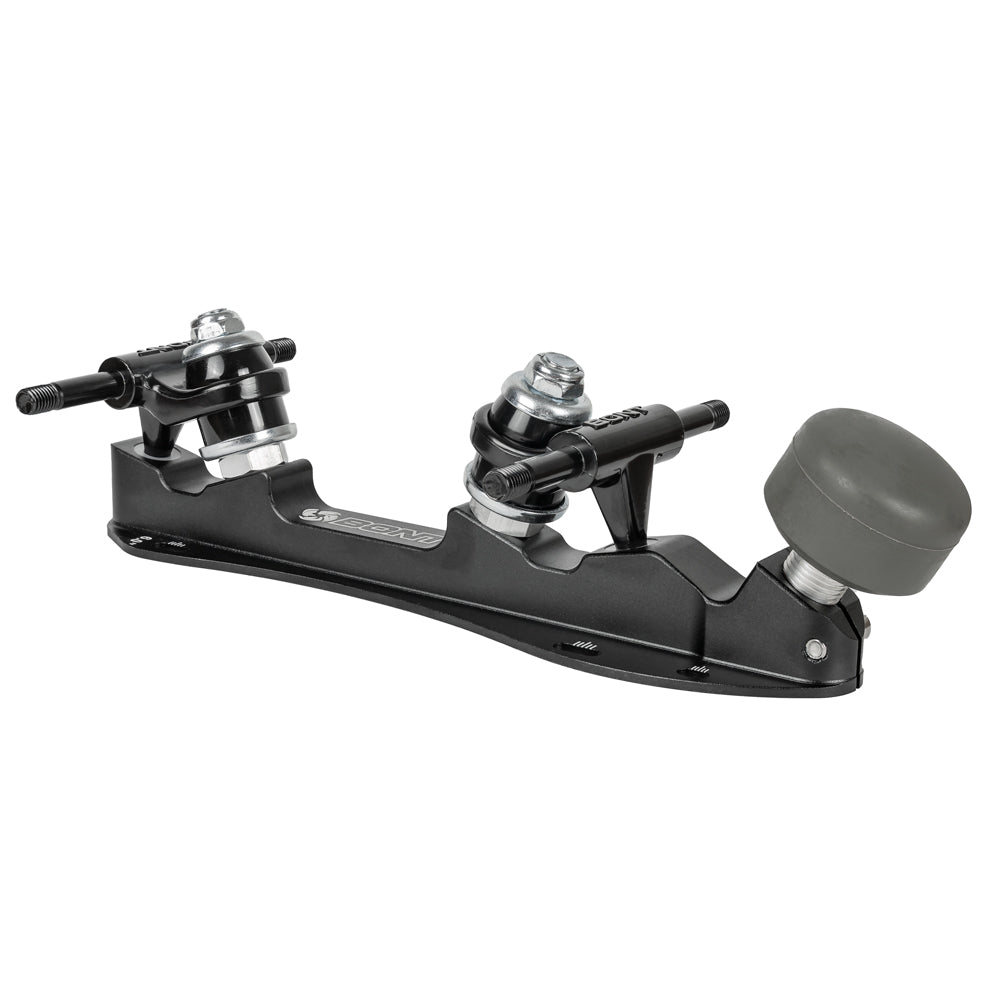 - Action: 20 degrees double action Plate Material: 6061 Aluminium Kingpin: Steel Cushion Hardness: 88A standard urethane cushions Trucks: Cast aluminium Axles: 8mm steel Toe stop: Adjustable Recommended use: Beginner / intermediate skaters Plate mounting hardware is supplied with the boots, not plates.