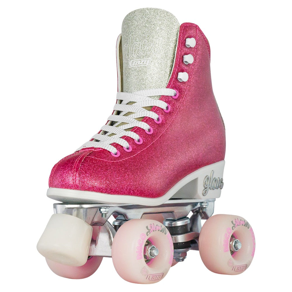 The Disco Glam roller skate has been updated with an improved fit and sizing while still combining the retro roller skate style with glitter sparkle looks, colour-matched larger 62mm wheels and white laces!