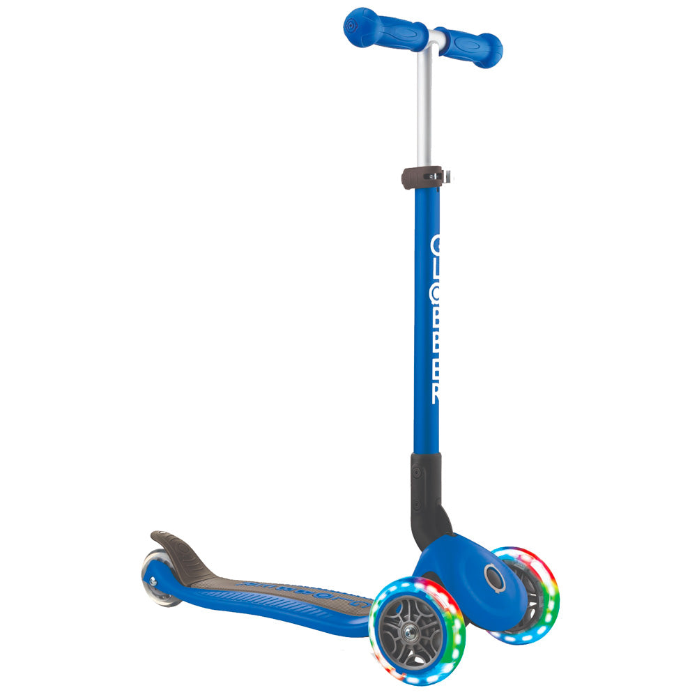 Globber Primo Light Up Foldable scooters feature Globber’s popular lean-to steering system allowing wider and sharper turn angles to improve the riding experience and Globber's Light Up wheels.