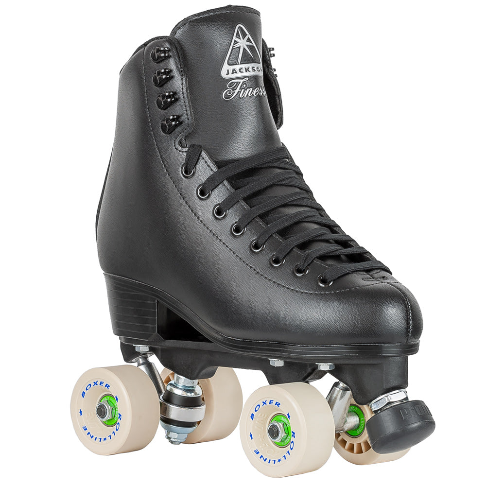 - Features: Boot: Jackson Finesse (Men's) Plate: Viper Zytel Nylon Bearings: Bionic ABEC 7 Wheels: Roll-Line Boxer 57mmx30mm 57D (Beige) Sizes: Men's: 6-12 full sizes only Boot Features: Reinforced Vinyl coated uppers Anti-bacterial Nylex lining.