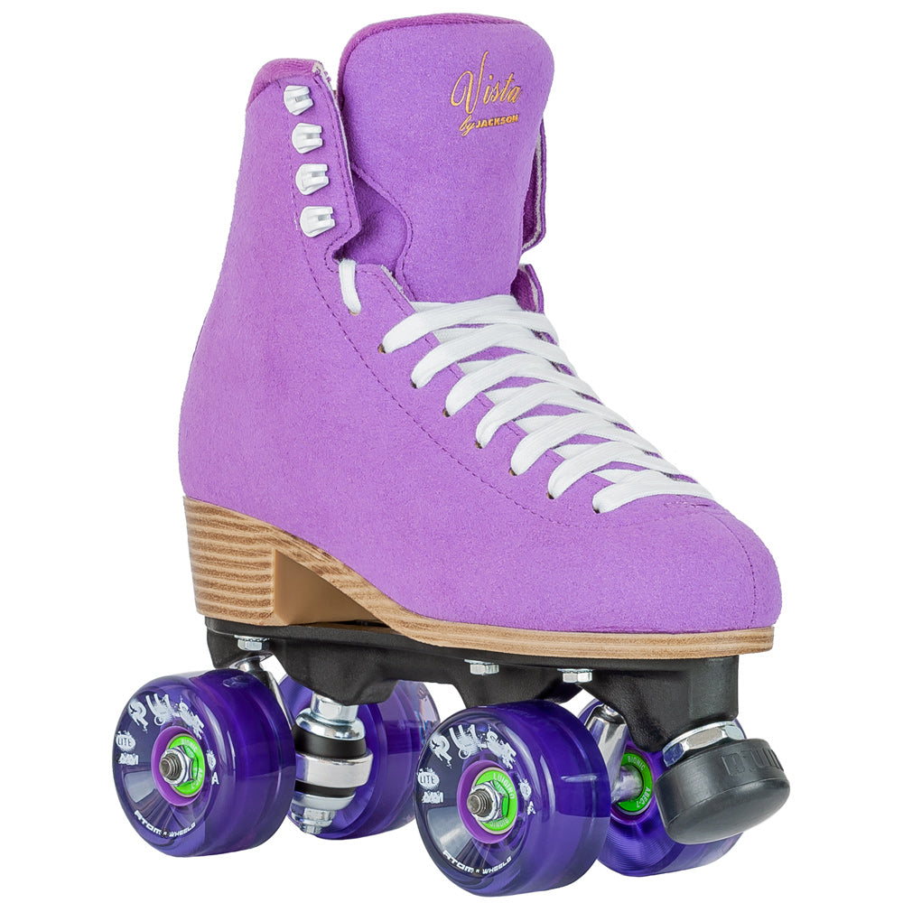 - Skate Features: Boot: Jackson Vista Plate: Viper Zytel Nylon Wheels: Atom Pulse Lite Bearings: Bionic ABEC 7 Toe Stop: Bionic XS Stopper Boot Features: Suede Microfibre upper Anti-bacterial Nylex lining Solein board reinforcement for strength, comfort and security Vegan Friendly Memory foam ankle padding for comfort and feel Flex notch for greater ankle flex A rolled collar that eliminates irritation from Achilles' tendons Foam-backed vinyl and mesh comfort tongue Stylized traditional PVC soles A great looking and fitting skate that is perfect for new or seasoned skaters.