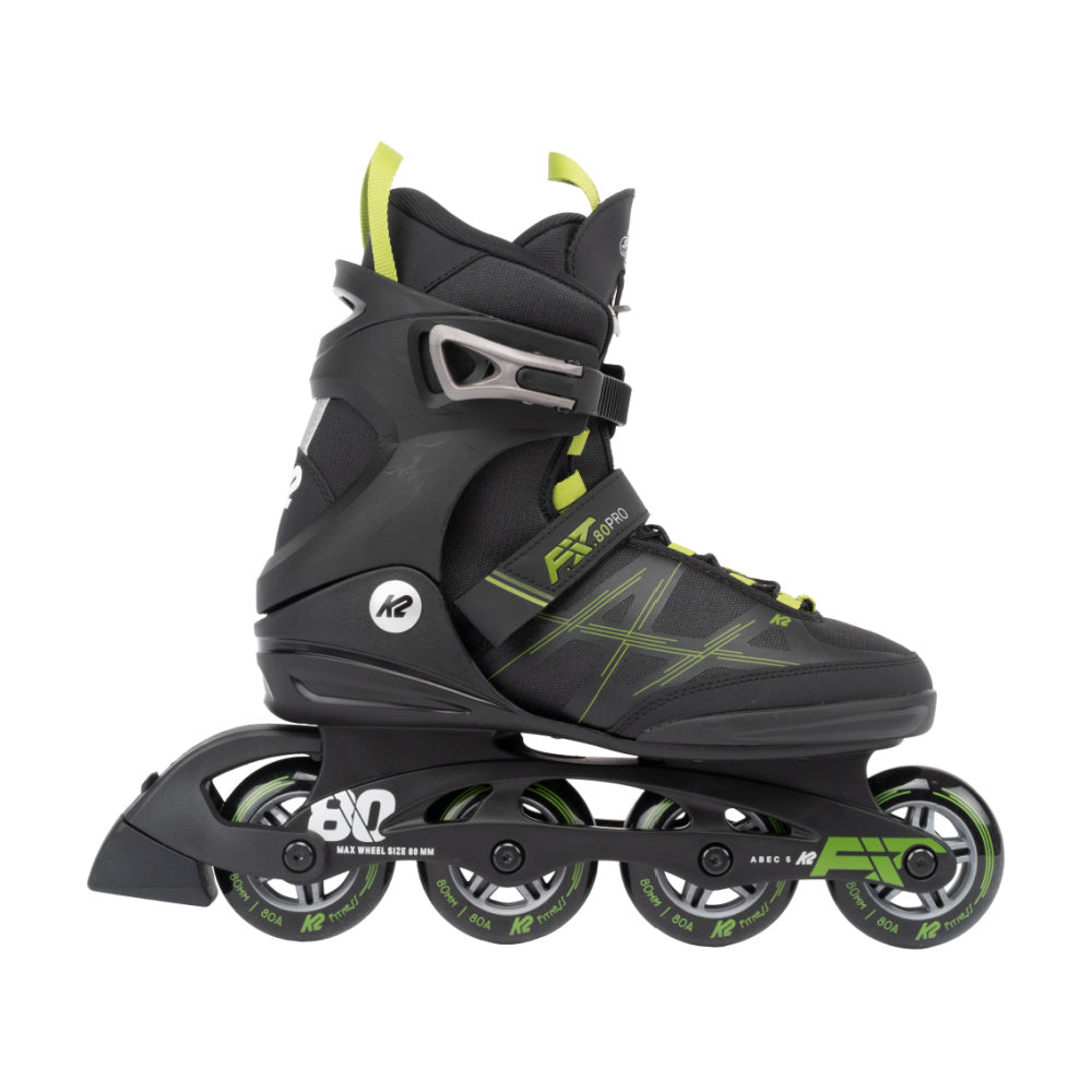 Pro 80 recreational inline skate offers a compact 4 x 80mm wheel configuration featuring the vibration-resistant K2 FBI frame.