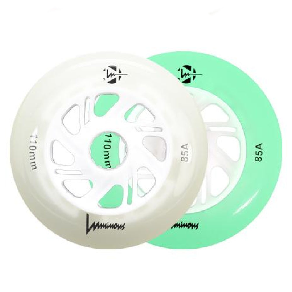- Features Include; Wheel diameter 110mm Durometer 85a Price is PER Single Wheel Comes with 1x dynamo spacer per wheel Please note, Luminous wheels are NOT a novelty wheel.