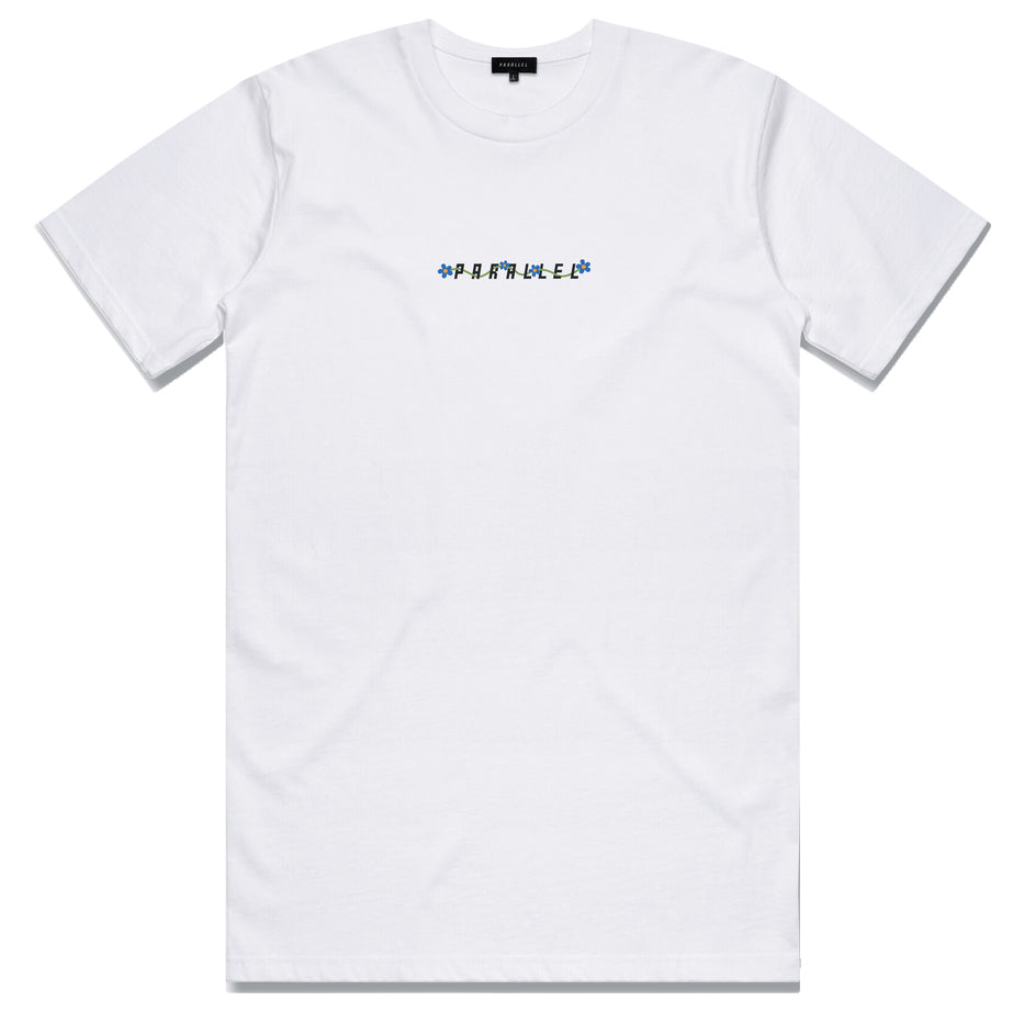 - This tee features the Parallel logo intertwined with flowers to create a single large print on the front of the tee.